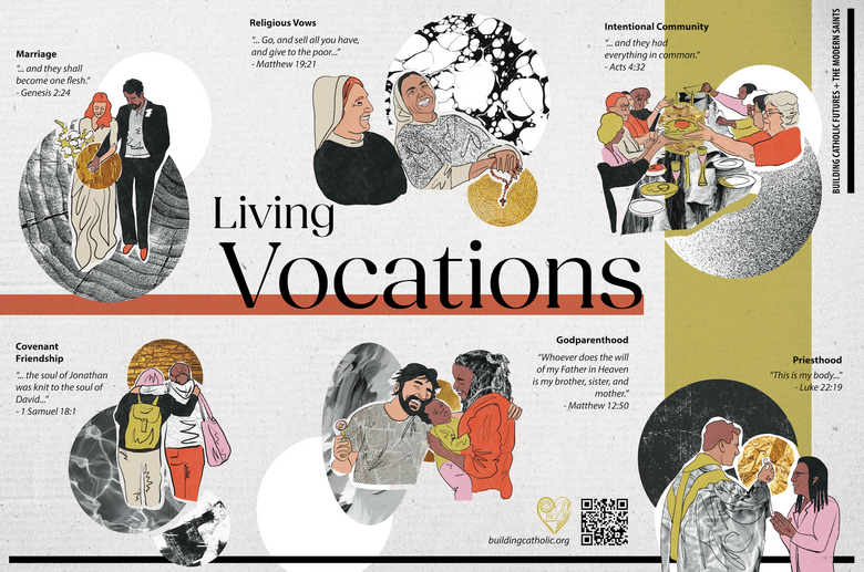 In this set, the vocations of marriage and vowed religious life are joined by many other options that are less-talked about. Giving students reminders that there are other life paths they can choose to take that are just as spiritual and life-giving is part of BCF's most important goal.