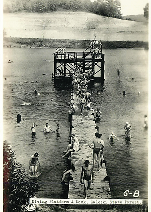 Our formal announcement was printed on linen paper, and the back is this incredible vintage photo I found of the Lake Hope Swimming area.