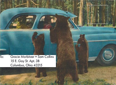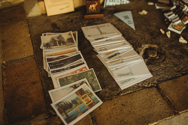 Rather than a typical bound book, we set out an assortment of postcards and asked guests to write advice, a note, or a suggestion of where we should go on our next adventure. I designed them using actual vintage postcard designs I collected, and edited the writing side to read "Camp Lake Hope".