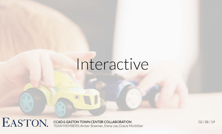 The next phase of the project was to pair up with others who had similar ideas and pitch the ideas a second time for the leaders of the business and marketing team of Easton. Taking their criticism and ideas from the last session, we shifted some locations, added new features, and refined concepts. Our final presentation at Easton went very well, and several ideas from our ideas are now implemented at the Town Center.